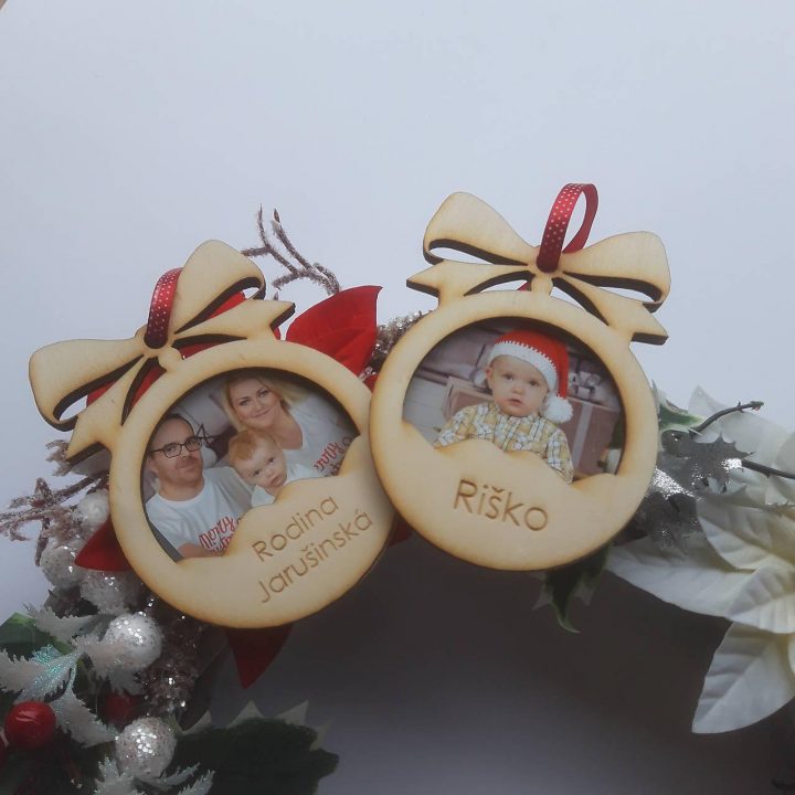 Vianočná guľa vyrezávaná z dreva, rozmer šírka 9x12cm, 2vrstvové drevo+fotografia je tlačená na profifototlačiarni vo nádhernej kvalite+gravírovanie mena. Meno prosím uvádzajte do poznámky. Foto prosím pošlite na e-mail: info@nakupto.sk